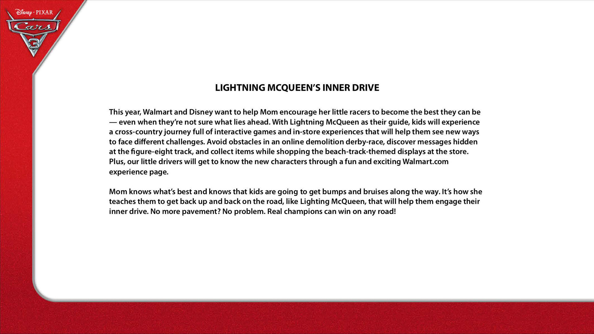 ACD - CREATIVE LEAD/DESIGN: Ideating how a Disney Pixar Cars 3 collectors program could come to life at Walmart.