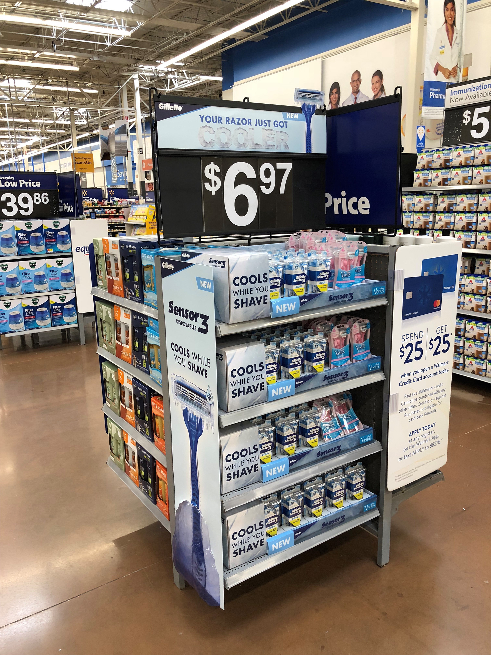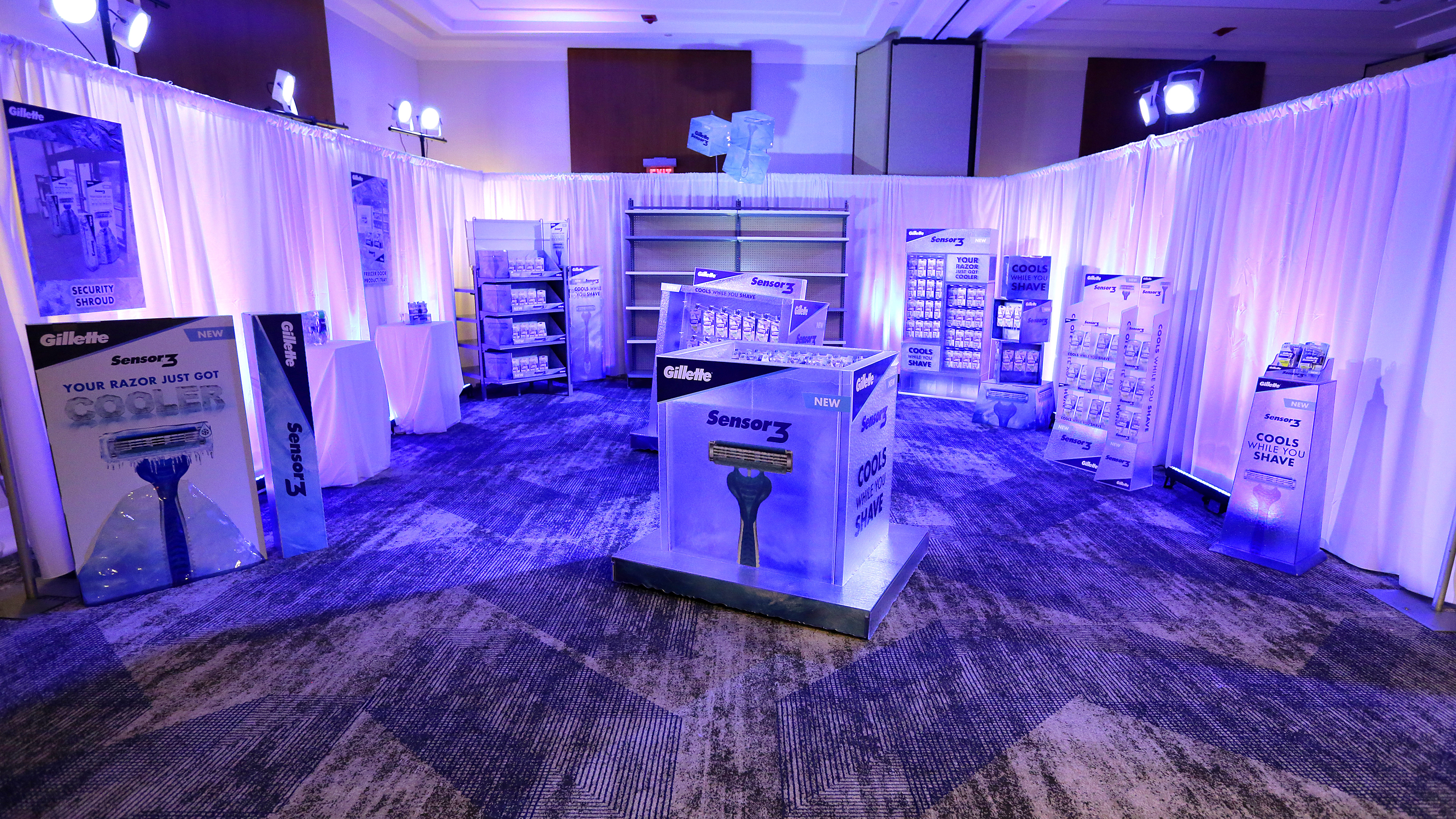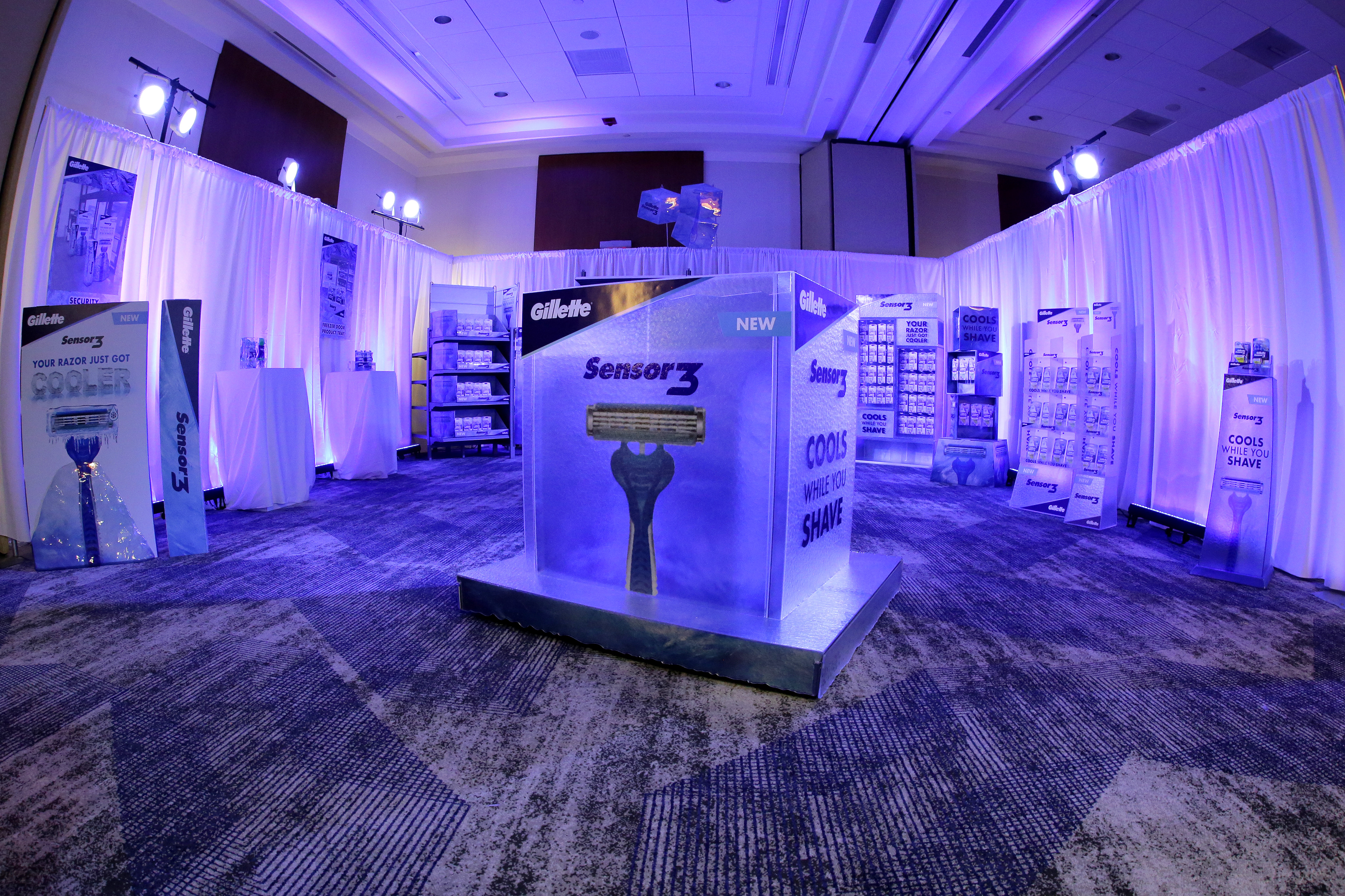 ACD - CREATIVE LEAD/ART DIRECT/DESIGN/SKETCH: Created a full multi-department take over for the launch of the Gillette Sensor 3 Cool razor. Roadshow environment set up in Boston, home of Gillette. In-store executions.